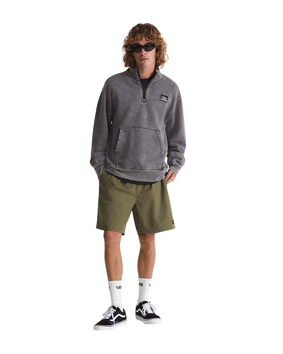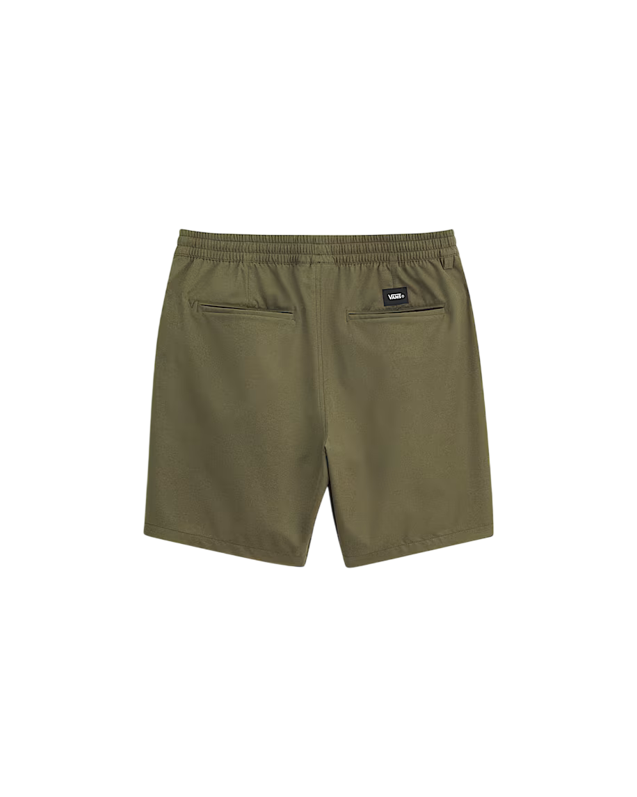 Sport shorts with elastic waistband and drawcord for a secure, easy fit Lightweight stretch polyester helps you move freely Durable water repellent (DWR) coating sheds light moisture Back welt pockets and front slash pockets keep small items close Woven Vans logo label at hem keeps it rooted in the Range family Relaxed fit for easy movement and a laid-back feel 100% polyester - Características do Produto